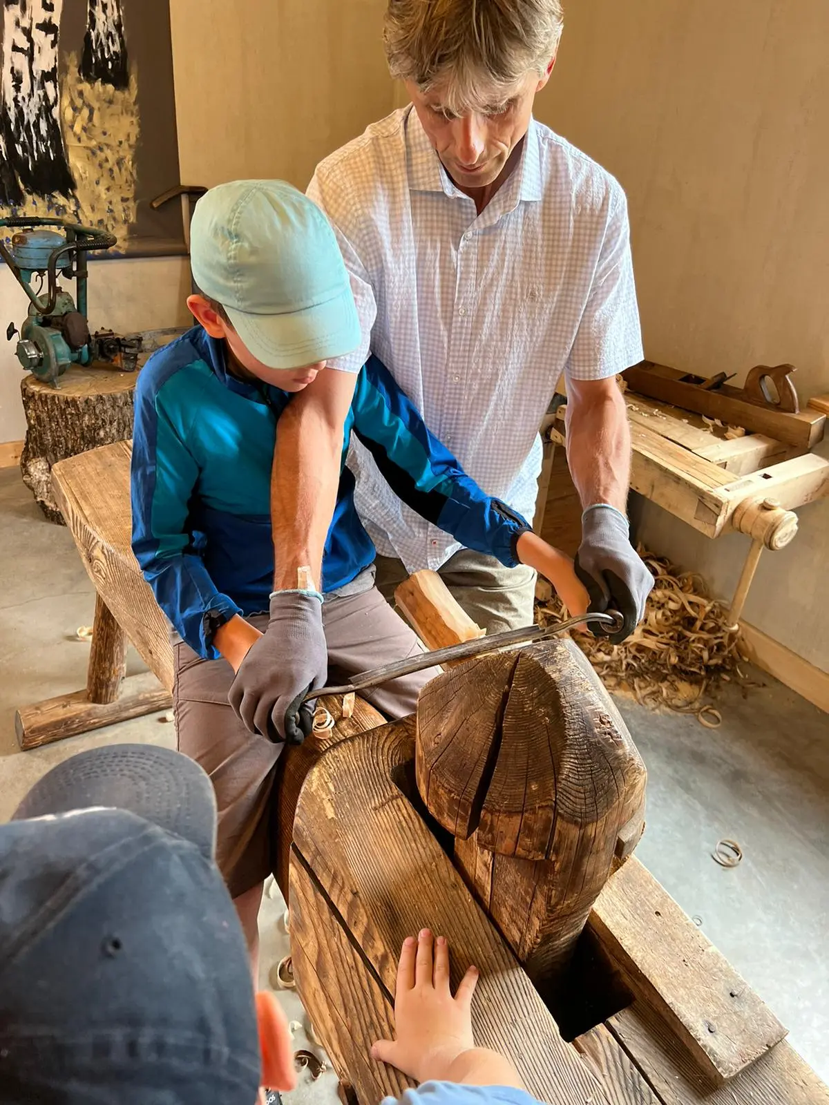 Atkarībā no vecuma un prasmēm, divu dienu laikā bērns izgatavo savu unikālo koka priekšmetu – tas var būt tējas paliktnis, svečturis, datora paliktnis, zobens, koka robots vai kas cits.